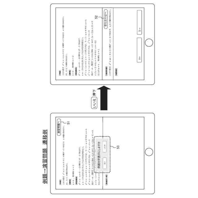 上記の学習支援装置の一態様では、ユーザが使用する端末装置と通信可能に接続されており、前記出力手段は、前記例題と、前記演習問題とを、前記端末装置の1つの画面上に同時に表示させる。この態様によれば、ユーザは、同一画面において、例題により解法や学習内容を理解し、そのうえで、演習問題を実施することで理解を深めることができる。