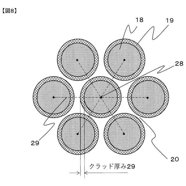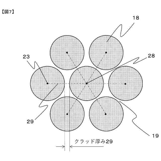 また、特許文献2においては、コア数が3247、コア径が10μm、コア変形度が1.5以下の実施例が提示されているが、伝送損失は1,200dB/kmと大きい。このようにコア径が小さくなると伝送損失が悪くなる課題があった。また、本文献ではコア変形度についてはコア100当り5までは変形度1.5以上のコアが存在しても許容とされる。これは一つのコア径は小さいため、画像全体としての影響は小さいことによる。しかしながら、空間多重通信においては一つ一つのコアが独立しているため、このような変形は許容することができない。このように従来の画像通信用マルチコア光ファイバをそのまま多重通信用として転用することは困難であった。