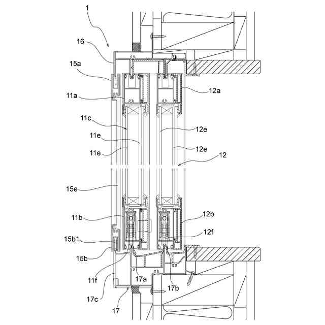 本発明に係る実施形態1の引違いサッシの縦断面図である。