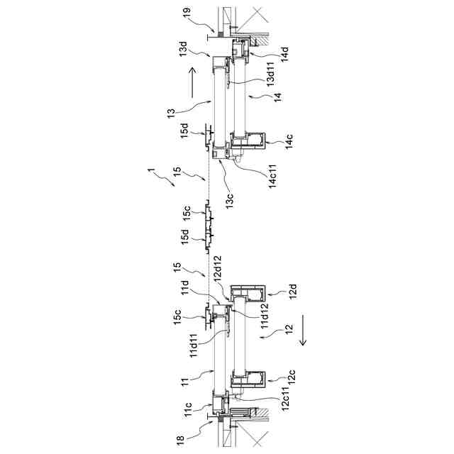 また、大開口のサッシ枠を大型の2枚の障子で構成する場合と比較すると、5枚以上の障子で構成しているので、各障子を小型化して重量を軽量化することができると共に、通常サイズ(汎用サイズ)の障子と部品を共通化してコストダウンも図ることができる。