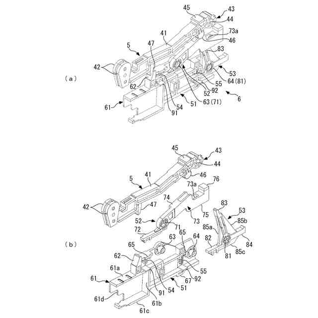 また、ハンマーは、前後方向に延びるとともに基端部側にシャンクローラが取り付けられたハンマーシャンクと、その先端部に取り付けられたハンマーヘッドなどで構成されている。そして、このハンマーは、ハンマーシャンクの基端部において回動自在に支持されている。