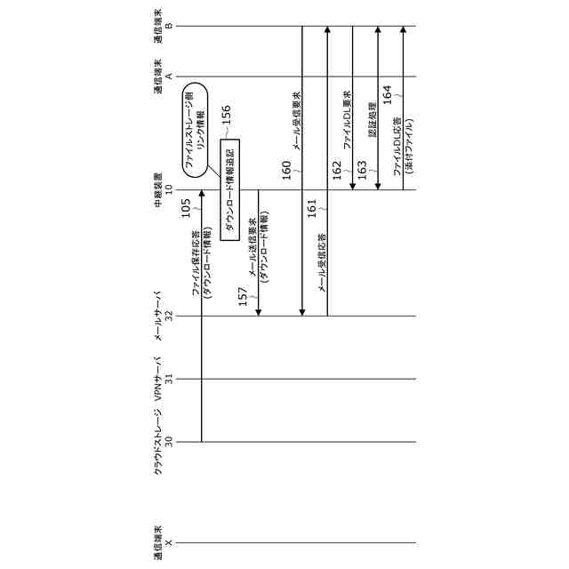 また、本発明にかかる上記中継装置の一構成例は、前記移行処理部が、前記第2の添付ファイルへのリンク情報として、前記通信網上に設けたVPN接続を経由したリンク情報を用いるように構成されている。