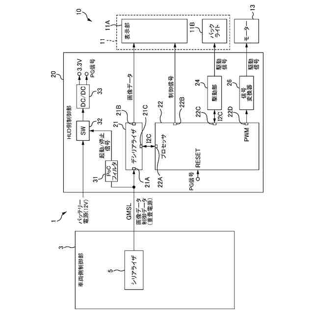 特許文献1には、デシリアライザを有するヘッドアップディスプレイ(HUD)が記載されている。また、特許文献1には、デシリアライザがI2C(Inter Integrated Circuit)ポートを備えることが記載されている。