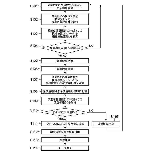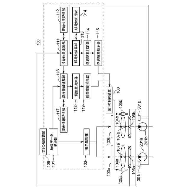 例えば、視差映像として表示される物体の像を使用者が見ると、使用者の左右それぞれの眼と物体とを結ぶ線のなす角である輻輳角は、その物体の位置に応じて変化する。この時、現実空間での経験に基づいて水晶体の焦点距離は輻輳角の大きさに応じて変化する。この場合、水晶体の焦点距離と映像表示装置の固定された視度とが不一致となる可能性があり、表示された視差映像に焦点が合わず、鮮明に見ることが困難となる等、良好な視認性が確保できないことがある。そのため、映像表示装置の視度調整では、装置内のレンズを駆動する方法等により、使用者の輻輳角を定める視差映像内の深度情報に応じて視度を変更することが望ましい。