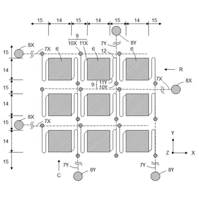 図14に示す第2の基板の内側面の概念的な部分平面図である。