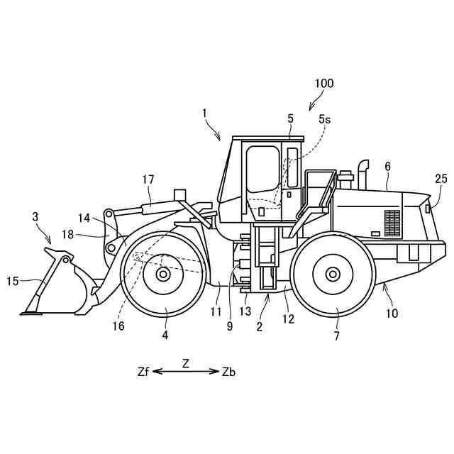 本開示の一実施形態におけるホイールローダの構成を示す側面図である。