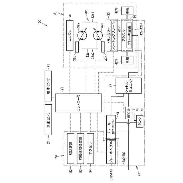 【解決手段】車両本体1は、走行可能である。車速センサ24は、車両本体1の車速を検出する。制動操作装置51Aは、オペレータに操作されることにより車体の制動信号を出力する。物体センサ25は、車両本体1の後方の物体を検出する。自動ブレーキ装置45は、物体センサ25の検出結果に基づいて、車両本体1を自動ブレーキにより制動させる。コントローラ26は、自動ブレーキ装置45の作動により車両本体1を制動させる自動制動指令を出力した後、車速と制動信号とに基づいて自動ブレーキ装置45の作動を解除する。