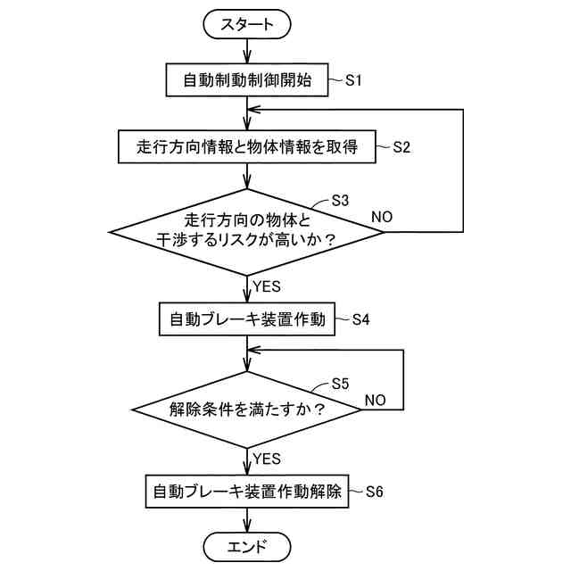 自動ブレーキ装置の作動により車体を制動させる自動制動指令が出力される。自動制動指令の出力後、車体の車速と制動信号とに基づいて、自動ブレーキ装置の作動が解除される。