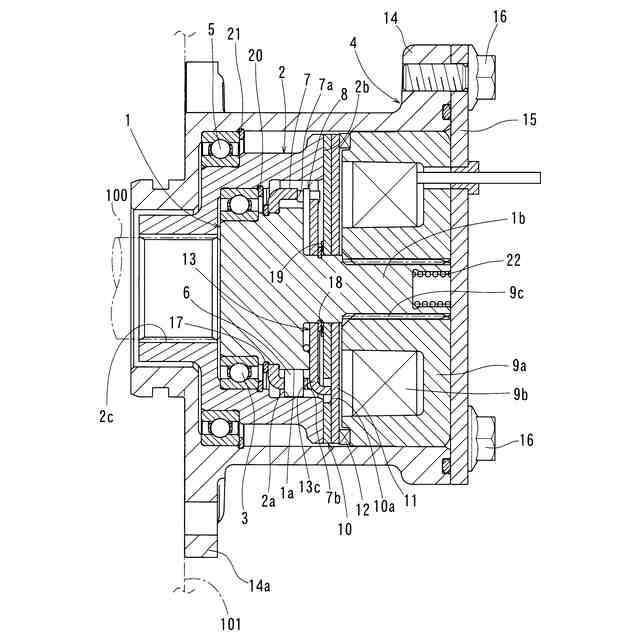 上記構成1によると、電磁石の励磁時に弾性部材によって摩擦部材が摩擦面部から軸方向に離れた位置に弾性的に保持されるので、摩擦部材と摩擦面部の接触が防止される。これにより、摩擦部材と摩擦面部の摩耗の発生が防止される。