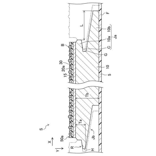 上記凹部は、開口側に向かって上記基材の厚さ方向に沿う幅が次第に広がるように底部を挟んだ両側の側面が傾斜し、