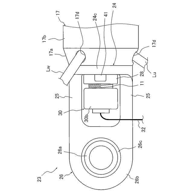 前記巻線用配線と前記信号線との少なくとも一方は、前記ロッドの先端から前記脚部の間を介して外部へ引き出される