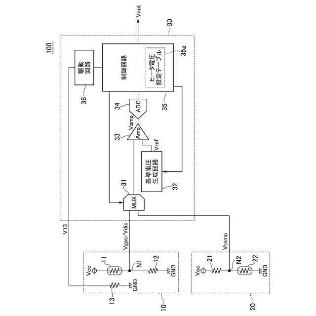 図1は、本開示に係る技術の第1の実施形態によるガスセンサ100の構成を示す回路図である。