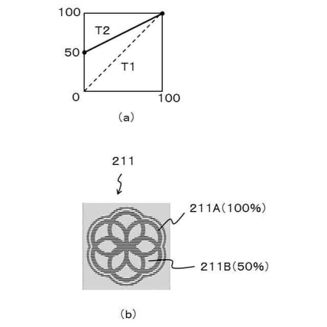 前記画線は、角度と形状の少なくとも一方が部分的に異なることで潜像が形成され、