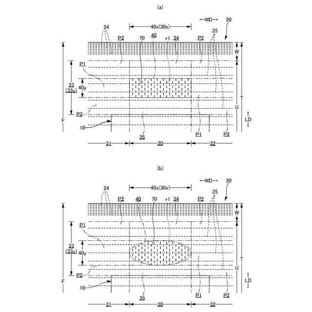 前記パッド固定領域は、幅方向に沿う長軸を有する楕円形領域である、