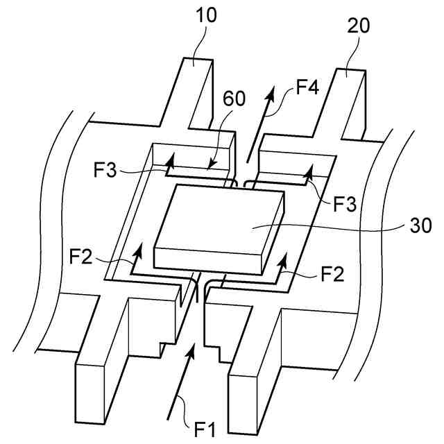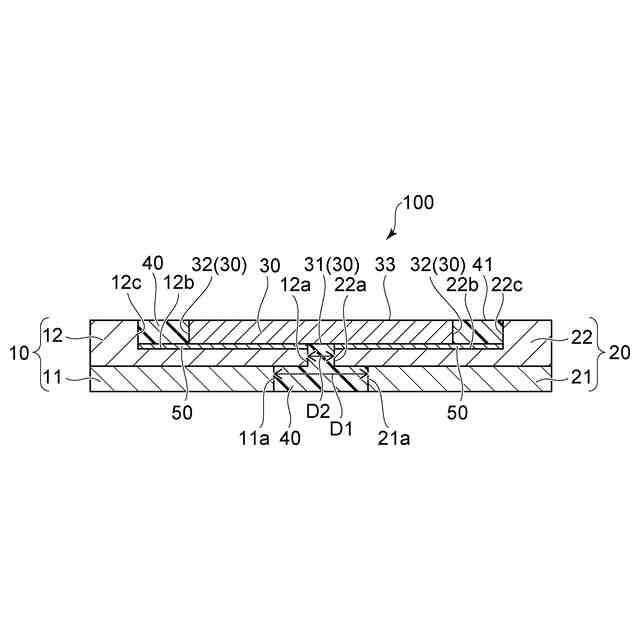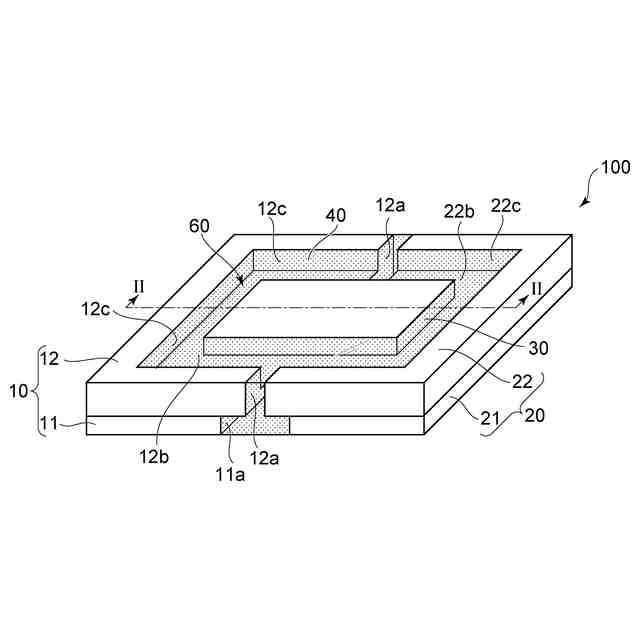 平面視において、前記第1導電部材における第2金属部の内平面、および、前記第2導電部材における第2金属部の内平面、のそれぞれは略四角形であり、