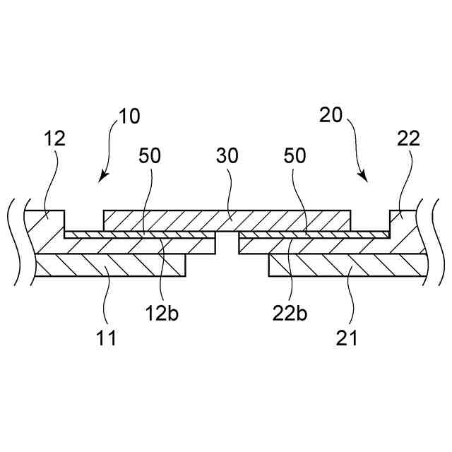 平面視において、前記第1導電部材における第2金属部の内平面、および、前記第2導電部材における第2金属部の内平面、のそれぞれは略半円形若しくは略半楕円形であり、