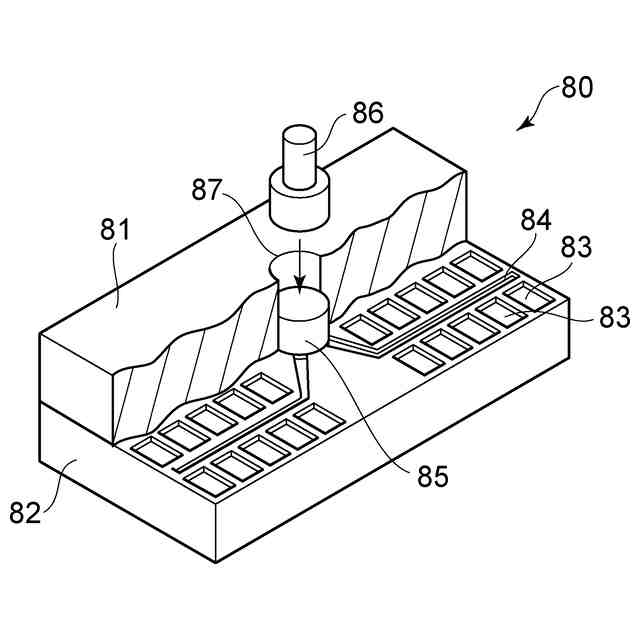 トランスファー成形工程(S400)を説明するための拡大した模式斜視図である。
