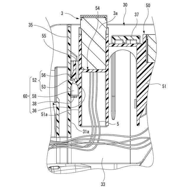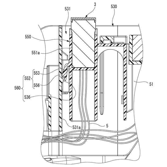 ロックアーム552は、先端部が接続体550の外側面551aに沿って嵌入方向と反対方向(図中、下方)に延びる可撓性のアーム本体553と、このアーム本体553の外面から突出する係合凸部556とを有する。