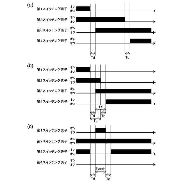 前記第2制約は、前記第2スイッチング素子のオン状態への切り替えのタイミングから前記第1スイッチング素子のオン状態への切り替えのタイミングまでの間に第2所定時間以上の間隔を設けるとともに、前記第1スイッチング素子のオフ状態への切り替えのタイミングから前記第2スイッチング素子のオフ状態への切り替えのタイミングまでの間に前記第2所定時間以上の間隔を設け、前記第3スイッチング素子のオン状態への切り替えのタイミングから前記第4スイッチング素子のオン状態への切り替えのタイミングまでの間に前記第2所定時間以上の間隔を設けるとともに、前記第4スイッチング素子のオフ状態への切り替えのタイミングから前記第3スイッチング素子のオフ状態への切り替えのタイミングまでの間に前記第2所定時間以上の間隔を設ける制約であり、