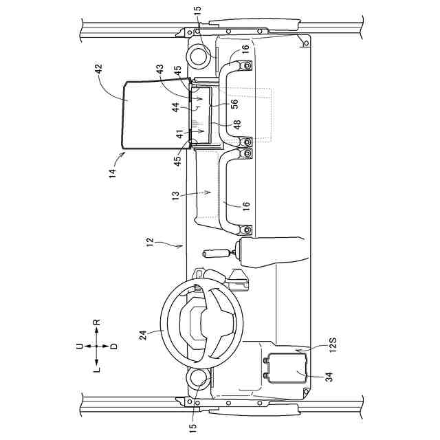 【解決手段】搭乗者が搭乗する運転部と、運転部に設けられ、搭乗者が着座可能な座席と、運転部に設けられ、開口部43を介して物品を出し入れ可能な収容部41と、収容部41の収容空間ASに設けられ、ケーブルの端子を接続可能なソケット55と、ソケット55に接続されたケーブルを収容部41の外部へ導出する導出部56と、が備えられている。