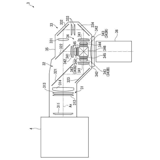 第1実施形態におけるプロジェクターの内部構成を示す模式図。