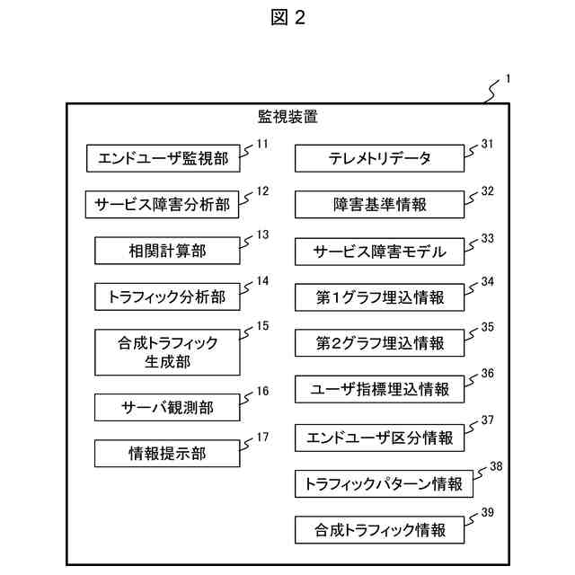 【解決手段】監視装置1において、サービス障害分析部12は、エンドユーザ監視部11により収集されたテレメトリデータ31に基づいて、サービス障害への寄与度が高い障害関連トラフィックを抽出する。相関計算部13は、ユーザ指標において異常が生じた場合に、障害関連トラフィックとユーザ指標との相関度を計算する。トラフィック分析部14は、計算された相関度に基づいて障害関連トラフィックから障害原因トラフィックを決定し、これに対応するトラフィックパターンを決定する。合成トラフィック生成部15は、決定されたトラフィックパターンに基づく合成トラフィックを生成する。