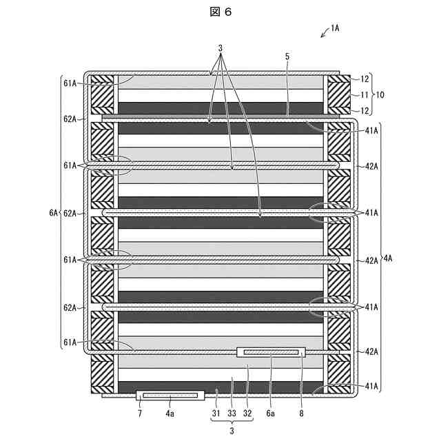 固体電解質層を含む全固体電池の高容量化を目的として、正極層、固体電解質層および負極層が積層された複数の積層体(電池単体)を並列接続するように積層することがある。このような積層構造では、各積層体の同極性の電極層同士が重なるように積層体が積層される。また、当該積層構造では、各積層体に設けられた正極および負極のそれぞれの集電体が、同極性のもの同士で接続される。