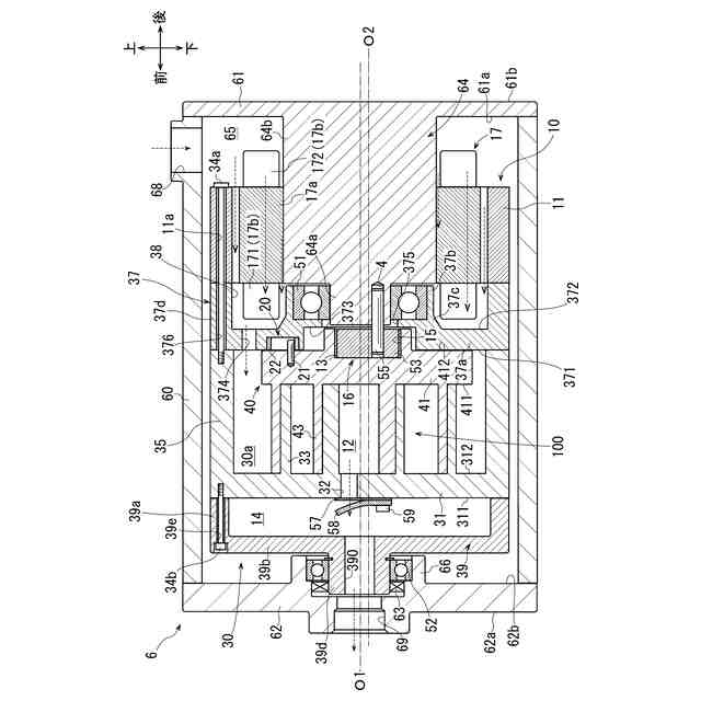前記ステータは、前記駆動軸心方向に延びる筒状をなし、前記ハウジングに支持されるステータコアと、前記ステータコアに巻回された巻線とを有し、