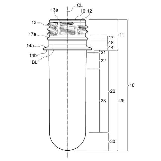 【解決手段】内層部材40と、外層部材50とを有するプリフォーム10は、ねじ部13と、ねじ部13の下方に位置するカブラ17と、カブラ17の下方に位置するサポートリング14と、カブラ17とサポートリング14との間の外面に形成された環状溝部18とを有する口栓部11と、口栓部11に連結されたプリフォーム本体25と、を備える。ねじ部13及びカブラ17は、内層部材40に形成され、サポートリング14は、外層部材50に形成され、プリフォーム本体25は、内層部材40と外層部材50との両方から形成される。内層部材40と外層部材50との境界線BLが、環状溝部18に位置する。
