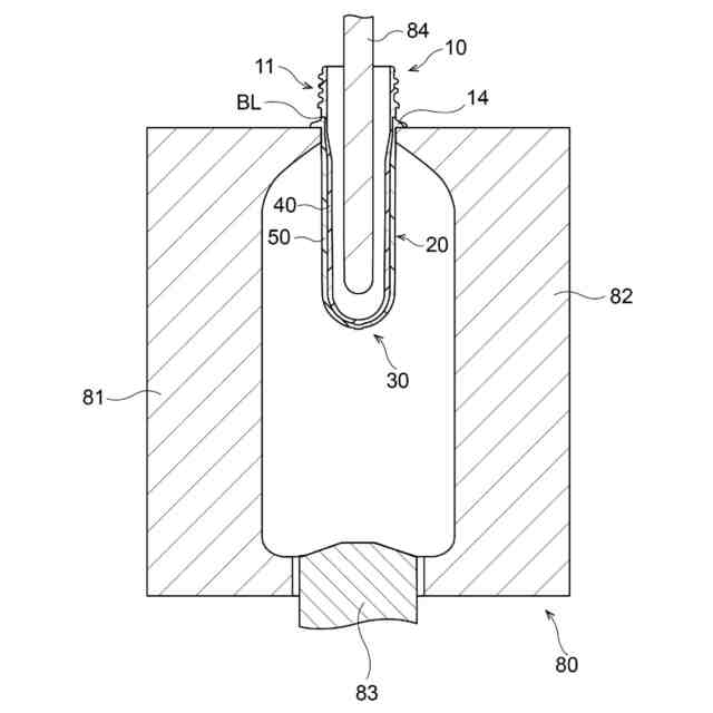 また、特許文献1のプリフォームにおいて、外層体と内層体との間に中間層を設け、これらを一体化している。しかしながら、外層体の内部に内層体を挿入する際、外層体と内層体との寸法差(隙間)が大きければ、これらを一体化した後に中間層が外れやすい。逆に外層体と内層体との寸法差(隙間)が小さければ、外層体の内部に内層体を挿入することが困難である。