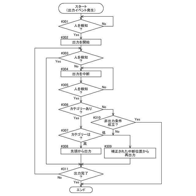 【解決手段】音声情報を出力する出力端末を有し、出力端末は、音声情報を出力する音声出力器5と、人を検知する人感センサ4と、音声出力器5に対する音声情報の出力を制御する情報制御ユニットTaとを有している。情報制御ユニットTaは、音声出力器5に対する音声情報の出力を許容する出力制御部24と、音声情報の出力の開始後に人感センサ4で人を検知できない状況が発生した場合に、音声情報の出力を停止する中断制御部25と、中断制御部25による出力の停止が継続する状況において人感センサ4が人を検知した場合に音声情報の再出力を行う再出力制御部26とを有している。