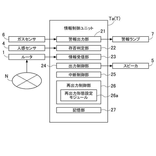 本特徴構成によると、人感センサが人を検知する状態において、外部から伝送される音声情報を出力制御部が音声出力器に出力する。また、音声出力器に対する音声情報の出力の開始後に人感センサが人を検知しない状態に移行した場合には、中断制御部が音声情報の出力を停止する。この後に、人感センサが人を検知した場合には再出力制御部が音声情報の出力を再開する。これにより、人は、音声情報の全てを取得できる。