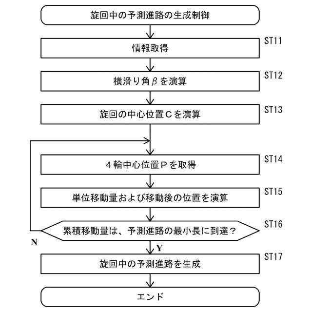 図8は、本実施形態における旋回中の予測進路の生成制御のフローチャートである。