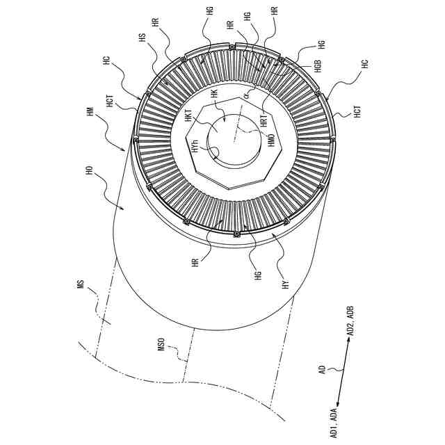 前記電動機軸又は前記加圧機軸に固定されるように構成され、少なくとも軸線方向ビレット側が開放された内部空間を有する、固定部と、