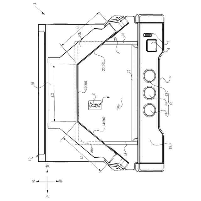 図1に示すゲーム装置の提示部を高さ方向の中段部分において水平に切断した水平断面図である。