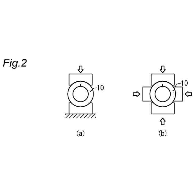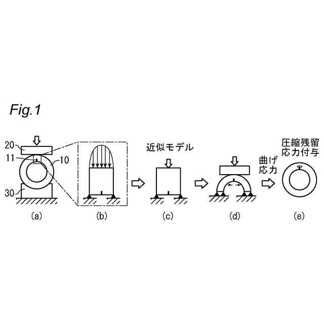 【解決手段】残留応力付与方法は、鋼管10の内面に圧縮残留応力を付与する残留応力付与方法であって、鋼管10の径方向の一方側に第1部材20、他方側に第2部材30を配置し、第1部材20と第2部材30とを接近させて鋼管10を径方向に圧縮する圧縮工程を備え、第1部材20は鋼管10の外面と線接触し、第2部材30は鋼管10の外面と面接触又は線接触する。