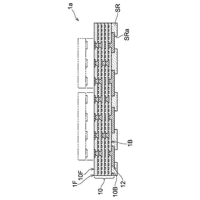配線基板1は、交互に積層された複数の導体層および絶縁層によって構成されるビルドアップ部を含む積層構造を有している。配線基板1を構成するビルドアップ部は、その厚さ方向と直交する2つの表面(第1面1Fおよび第1面1Fと反対側の第2面1B)を有している。一実施形態の配線基板の製造方法によって製造される配線基板のビルドアップ部は、図1に示されるように、少なくともビルドアップ部10を含んでいる。ビルドアップ部10の表面(第1面10F)が第1面1Fを構成している。