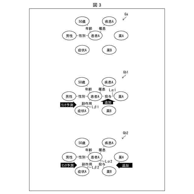 リンクとして、関係「性別」を表すリンク、関係「年齢」を表すリンク、関係「罹患」を表すリンク、関係「発症」を表すリンク、関係「副作用」を表すリンク、関係「予後」を表すリンク、及び関係「投与」を表すリンクの少なくとも何れかを含む、
