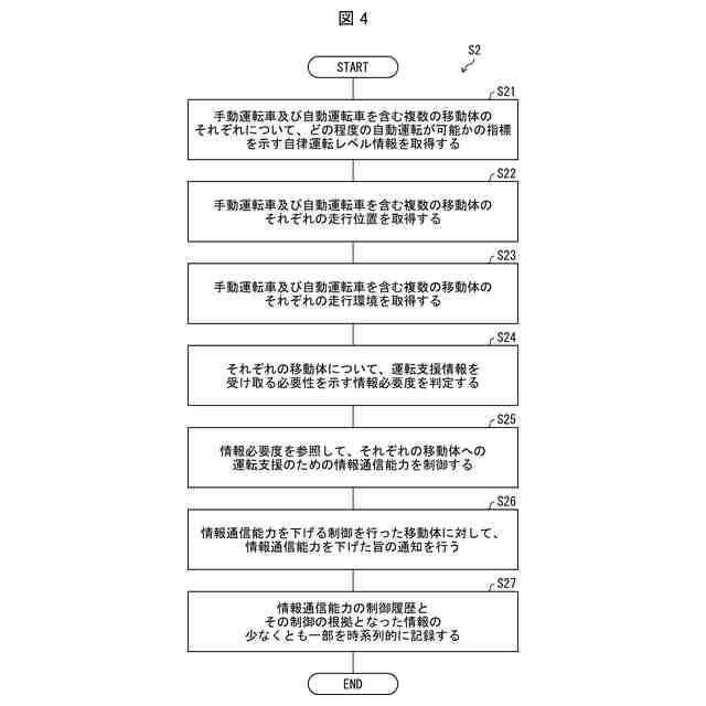 将来的に、インフラ支援型、又はインフラ協調型の交通システム(以下、「インフラ支援型交通システム」という。)の対象として、自動運転車、運転者が運転する手動運転車、今後実用化が見込まれる空飛ぶ車など、機能又は通行場所の異なる複数の車両や、認知・判断性能レベルの異なる複数の車両が混在することが予想される。そのような環境において、限られた通信リソースの中で、無線通信に対する要件を全車両一律に規定してしまうと、通信の失敗や途絶の発生確率も一律となってしまい、より情報の必要度合いの高い車両の安全度が低下してしまう。