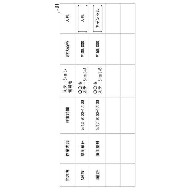 発注者端末100は、発注者によって操作される端末である。発注者端末100は、ネットワークNWを介して発注管理装置300にアクセスする。発注者は、発注者端末100を介して発注管理装置300にアクセスし、工事の作業に係る発注情報を発注管理装置300に登録する。発注情報には、例えば現場の住所、作業内容、要求スキルレベル、作業に用いる作業機械400、作業期間、落札期限、最大落札価格、即決価格が含まれる。発注者端末100は、PC、スマートフォン、タブレット端末などであってよい。