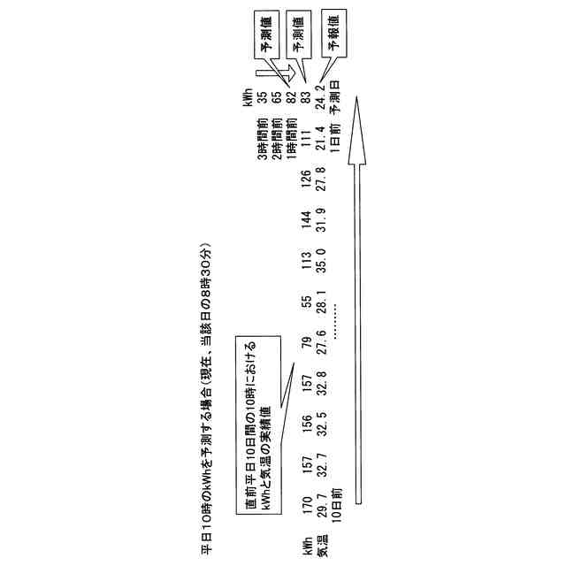 予測モデルによる電力消費量の予測処理に関する説明図である。