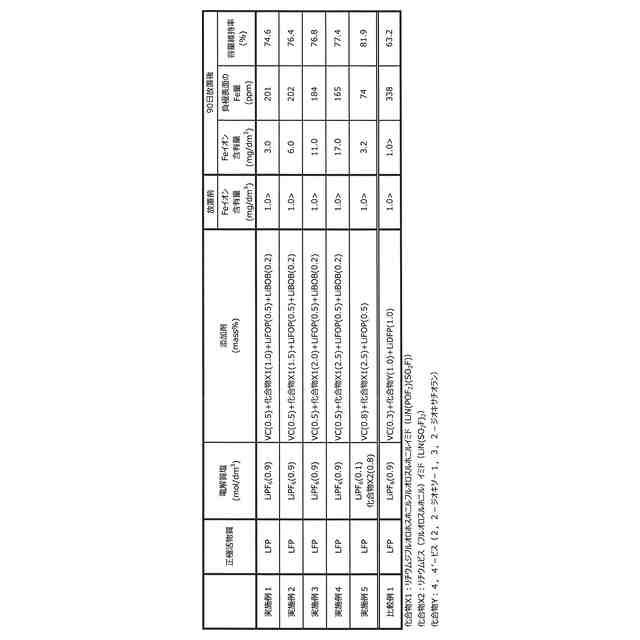 リン酸鉄リチウム等の鉄元素を含む正極活物質が用いられた非水電解質蓄電素子においては、正極活物質から非水電解質へ鉄イオンの溶出が生じることがある。特にこのような非水電解質蓄電素子を高温環境下で長期間放置すると、正極活物質から非水電解質へ溶出した鉄イオンが金属鉄あるいは鉄化合物として負極表面に析出することにより、放電容量の低下を招きやすい。