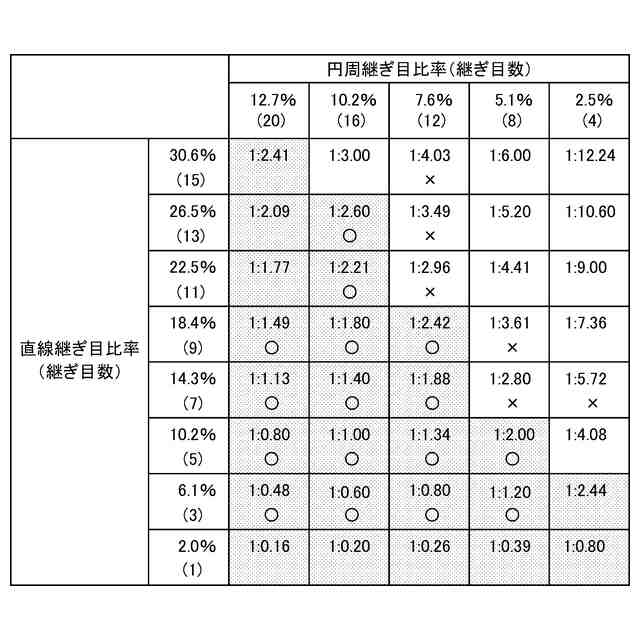 円周継ぎ目比率:直線継ぎ目比率=1:2.6以下