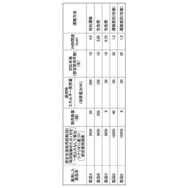 少なくとも消費電力、想定使用年数および想定使用頻度に基づいて電力使用量を計算し、