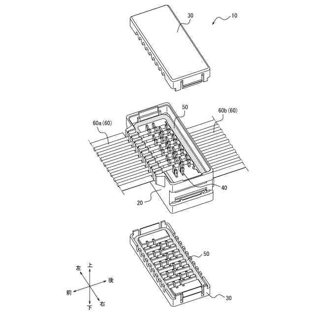 従来、互いに嵌合した一対の嵌合物が複数の対象物を保持し、各対象物が嵌合物の内部でコンタクトを介して互いに電気的に接続するコネクタが知られている。このようなコネクタにおいて、嵌合物が嵌合した際に、対象物とコンタクトとの接続部に水及び塵埃などの外部の異物が侵入しないよう接続部を保護する技術が知られている。