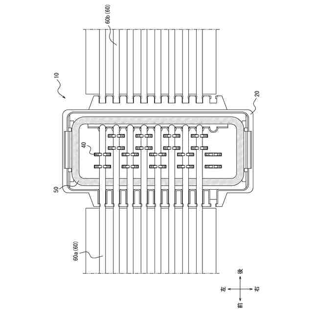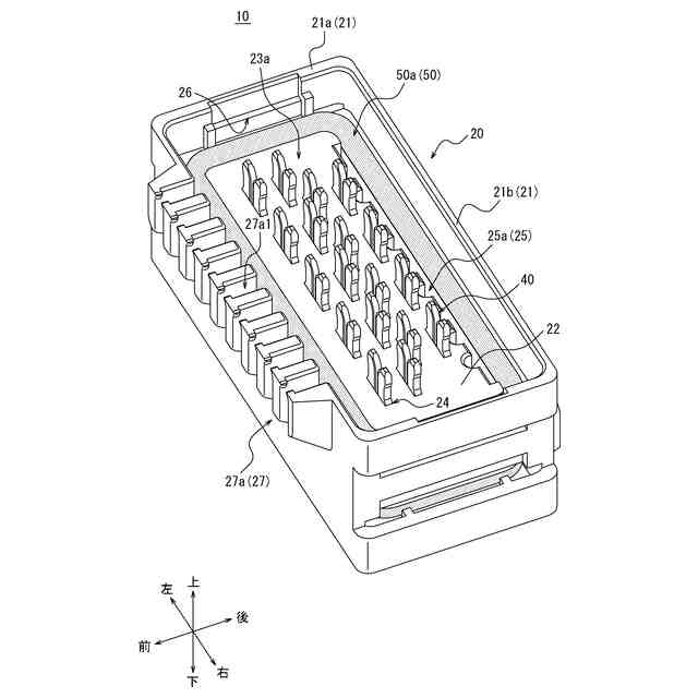 特許文献1に記載のコネクタでは、対象物の端部が嵌合物内に収容されて、当該端部に対し防水処理などの保護処理が施される。当該コネクタでは、対象物の端部を収容する収容部は、コンタクトの周囲を囲む充填剤の外側に配置され、当該充填剤によって囲まれていなかった。