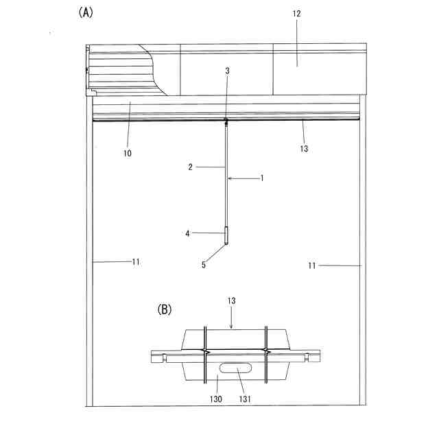 ここで、フック棒1´を座板に掛止した時に、フック部3´の掛止部が下に向いていると、シャッターカーテンの閉鎖中に掛止部が座板の孔部から抜けにくくなり、閉鎖に時間を要するおそれがり、操作者にとってストレスとなる。掛止部が座板の孔部から抜けずシャッターカーテンが下降を継続すると、フック棒1´が床と衝突するおそれもある。