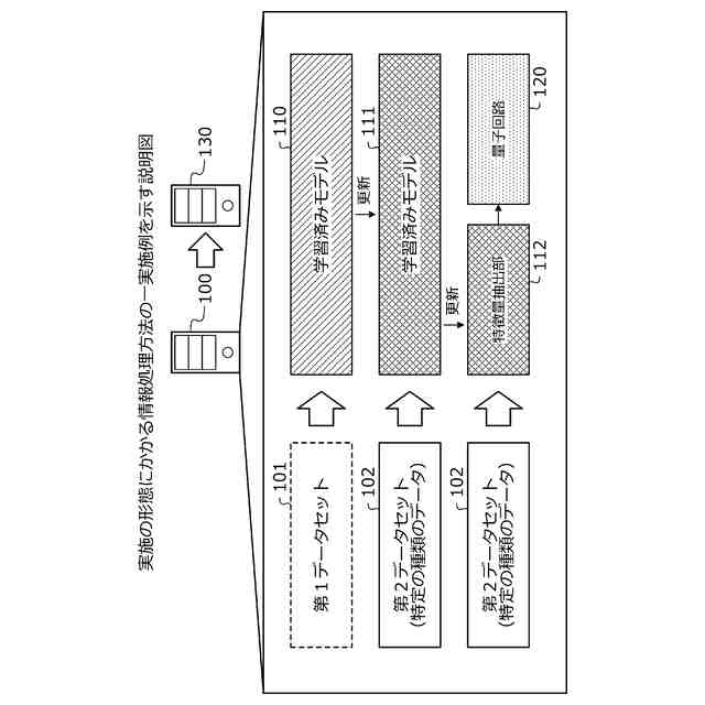 【解決手段】情報処理装置100は、学習済みモデル110を取得する。情報処理装置100は、特定の種類のデータを含む第2データセット102を記憶する。情報処理装置100は、特定の種類のデータの分類精度が向上するよう、第2データセット102に基づいて、取得した学習済みモデル110を更新する。情報処理装置100は、第2データセット102に基づいて、更新した学習済みモデル111によって入力されたデータから抽出される特徴量に応じて当該データの分類結果を出力する機能を有する量子回路120を学習するよう、演算部130を制御する。