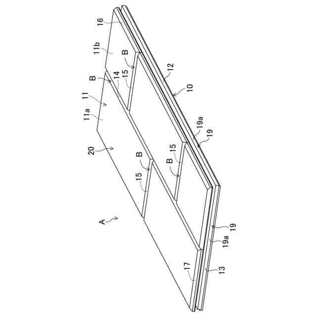 上記基材の表面は、該基材の表面において長辺方向に延びる少なくとも1本の縦溝によって複数の表面部に区画され、