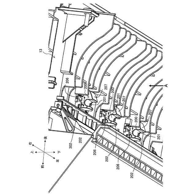 本願発明においては、軸保持部材が、隣接する2つの第1ローラの間に配置される。これにより、隣り合う第1ローラどうしの間で外装カバーとローラ軸との間隔を保持することができる。